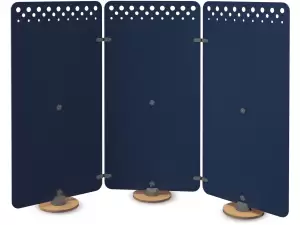 Aukšta mėlyna akustinė pertvara pagaminta iš 12 mm storio veltinio plokštės, užtikrinančios efektyvią garso izoliaciją ir estetišką išvaizdą. Dėl savo dizaino pertvara gali būti naudojama įvairiose erdvėse, sukuriant patogią aplinką darbui, mokymuisi ir poilsiui.