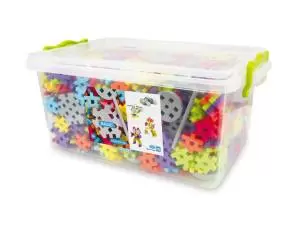Skirtingų dydžių kaladėlės suteikia galimybę kurti tikslias ir stabilias struktūras, o viskas supakuota į patogų plastikinį dėklą su dangčiu, kad būtų lengva laikyti ir tvarkyti.