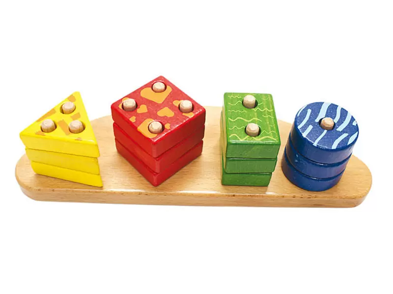 didelė medinė dėlionė, sudaryta iš pagrindo ir kaladėlių. Kiekvienai figūrai priskirtas tam tikras kaiščių skaičius, kurie veikia kaip savikontrolės elementai. Žaidimas padeda vaikams mokytis atpažinti, rūšiuoti ir derinti figūras pagal formą bei spalvą.