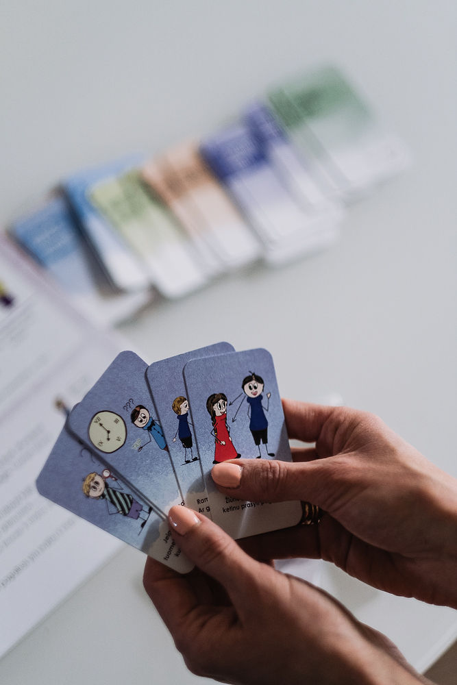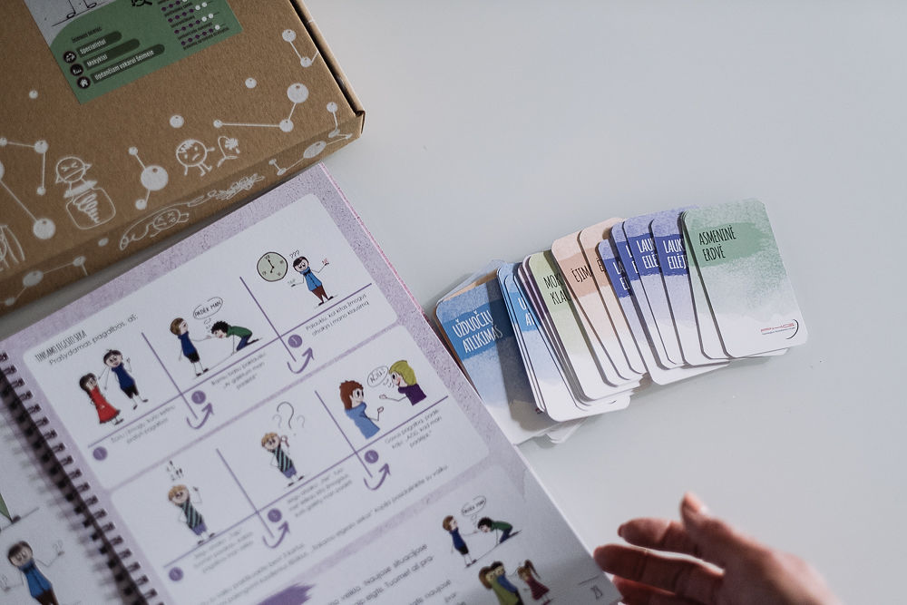 Žaismingai ir nuosekliai pateikiami kasdieninių situacijų, tokių kaip mokytojos klausymo, užduočių atlikimo, laukimo eilėje, pagalbos prašymo, patyčių stabdymo algoritmai, aptariamos elgesio priežastys ir pasekmės, galimi sunkumai ir pagalba. Naujiems socialiniams įgūdžiams įtvirtinti pateikiami paruošti užduočių lapai bei veiklos, žaidimai panaudojant rinkinyje esančias korteles. Kiekvieno socialinio įgūdžio vaikas mokysis pažingsniui, žaidybinėse veiklose. O naujo įgūdžio treniravimas padidins tikimybę, jog vaikas įgūdį taikys kasdienybėje.