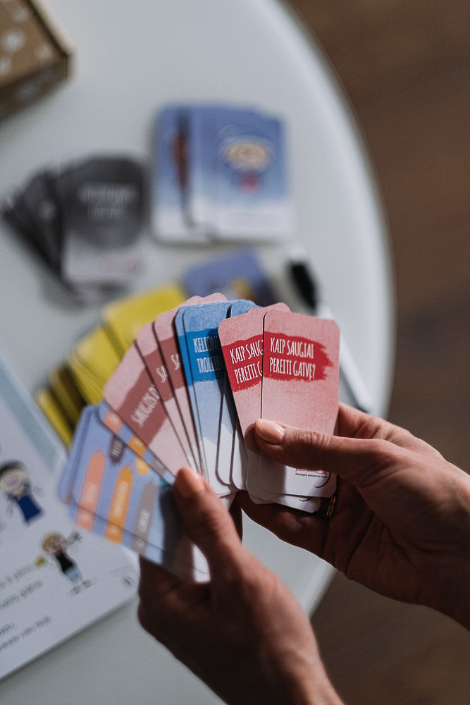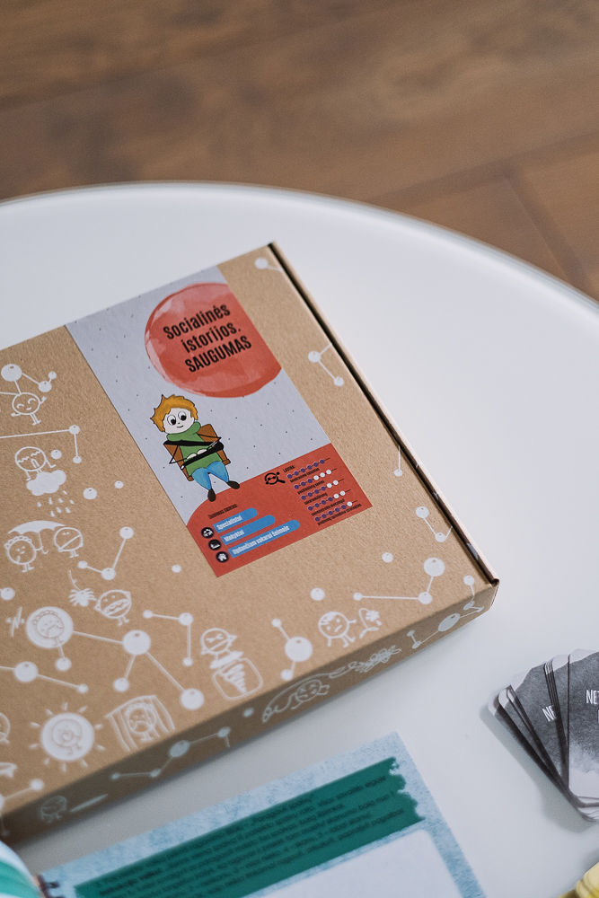 Žaismingai ir nuosekliai pateikiami įtampą keliančių situacijų, patyrus nemalonius pojūčius, tokius kaip didelis garsas, nepatinkantis kvapas, skonis, temperatūra, šviesa, prisilietimas, arba saugumo situacijų (apsaugos diržo segėjimo, saugaus ėjimo per gatvę) tinkamo elgesio algoritmai, aptariamos elgesio priežastys ir pasekmės, galimi sunkumai ir pagalba. Naujiems socialiniams įgūdžiams įtvirtinti pateikiami paruošti užduočių lapai bei veiklos, žaidimai panaudojant rinkinyje esančias korteles. Kiekvieno socialinio įgūdžio vaikas mokysis pažingsniui, žaidybinėse veiklose. O naujo įgūdžio treniravimas padidins tikimybę, jog vaikas įgūdį taikys kasdienybėje.