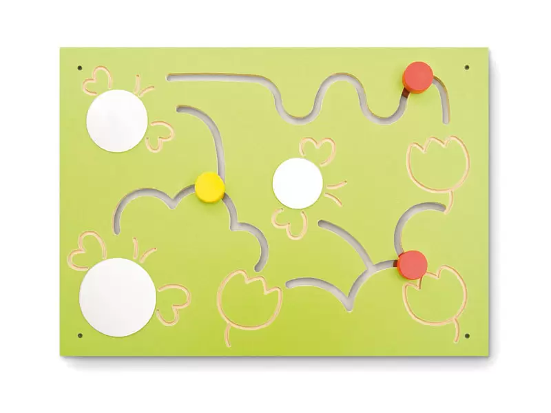 Spalvinga manipuliacinė lentelė su bičių motyvu, su labirintais ir veidrodėliu, padeda lavinti smulkiąją motoriką bei paruošia vaikus grafiniams veiksmams. Veidrodėlis praturtina žaidimą, skatina suvokimą ir aktyvią vaiko sąveiką su lentele. Lentelė puikiai tinka kaip patrauklus ir įtraukiantis ugdomosios erdvės elementas, skatinantis visapusišką vaiko vystymąsi.