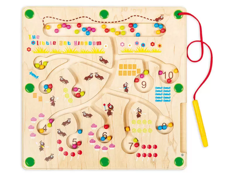 Matematinis labirintas vaizduoja skruzdėles skruzdėlyne ir yra puiki edukacinė pramoga vaikams. Tuneliai, išpjauti medinėje lentelėje, yra uždengti organinio stiklo (pleksi) plokštele, kuri neleidžia spalvotiems rutuliukams iškristi ar pasimesti.