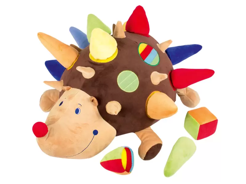 Ežiuko kai kurie spygliukai prisitvirtina Velcro limpančios juostelės pagalba, kurių vienas barška, kitas skleidžia kitus garsus, nosytė skamba, pėdutės pripildytos granulių. Ežiukas pasiūtas iš švelnios, malonios liesti medžiagos.