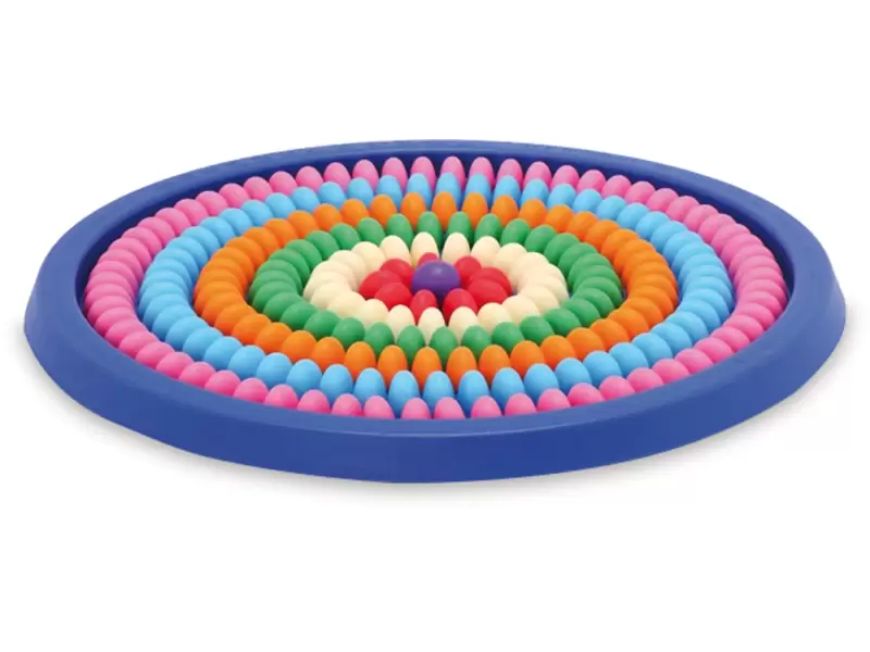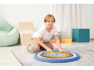 Priemonė, skirta jutimų ir motorikos vystymui, puikiai tinkanti žaidimui bei terapijai. Apvalus dizainas su spalvotais kamuoliukais, primenančiomis natūralius akmenukus, suteikia malonų pėdų masažą ir stimuliuoja lytėjimo receptorius. Platforma padeda gerinti pusiausvyrą, judesių koordinaciją ir kūno suvokimą. Spalvinga išvaizda daro ją patrauklią įvairaus amžiaus naudotojams, tinka relaksacijos ir terapijos užsiėmimams.