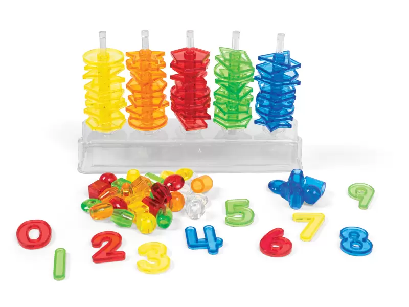 Skaidrių formų abakas – tai daugiafunkcinis edukacinis žaislas, skirtas matematikos, spalvų ir formų pažinimui. Rinkinį sudaro trys tematiniai skaidrių blokelių komplektai: