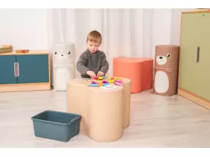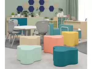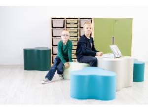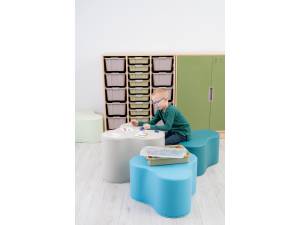 Dėl savo dobilo formos dizaino pufas yra modulinis – gali būti naudojamas kaip sėdimoji vieta arba staliukas. Sujungus kelis tokius elementus, galima sukurti vientisą ir estetišką sėdėjimo zoną. Clover serijos pufai gali būti jungiami abiejuose galimuose aukščiuose, leidžiančiuose kurti įvairias konfigūracijas ir pritaikyti erdvę pagal individualius poreikius.